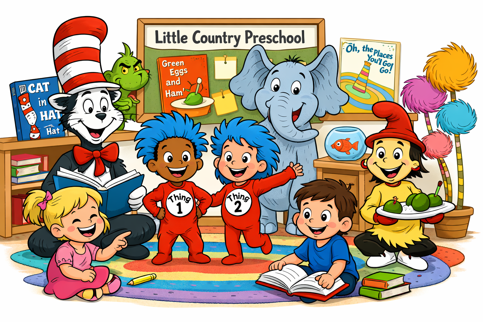 A Dr. Seuss themes also creates opportunities for meaningful conversations about kindness, perseverance, and celebrating individuality. Stories like Horton Hears a Who gently teach empathy and standing up for others, while The Sneetches opens discussion about inclusion and fairness. These social-emotional lessons are just as important as academic readiness in the preschool years.